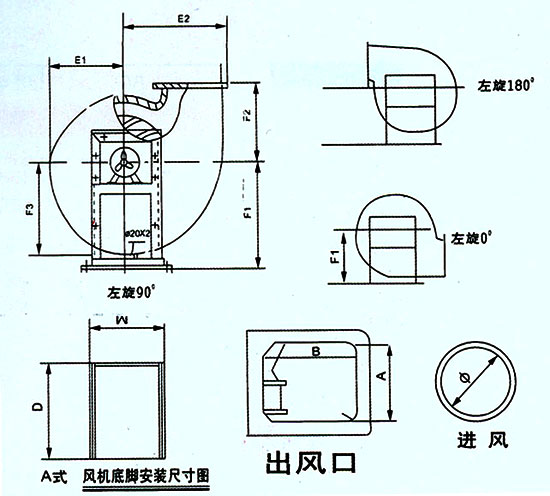 SY-731-Ⅱ型PP離心風(fēng)機(jī)為全塑無(wú)鋼支座,大機(jī)型為8A號(hào),內(nèi)機(jī)出口360°任意轉(zhuǎn)向,進(jìn)出風(fēng)口按照SY-731-Ⅰ型表,安裝尺寸由我廠另提供。