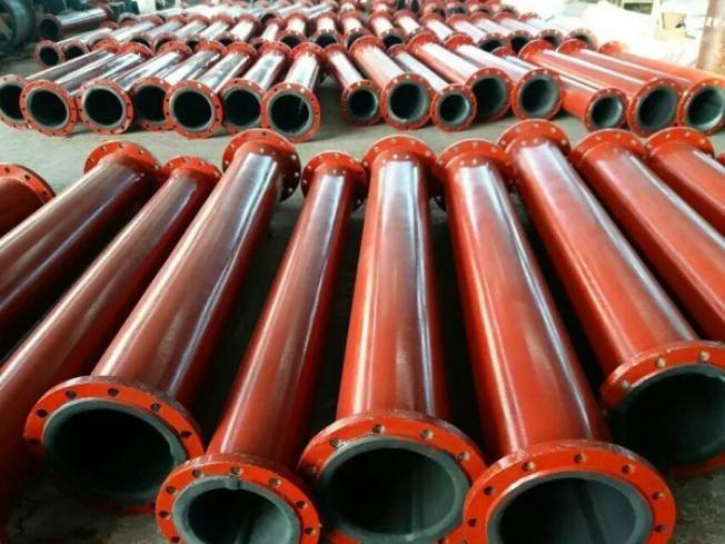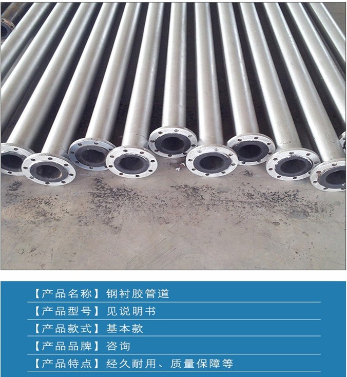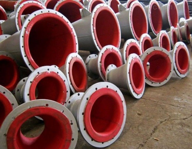 5.管道使用6-8年后近90°轉(zhuǎn)動(dòng)一次,使用壽命會(huì)更長(zhǎng),襯膠管道可反復(fù)襯膠使用4次,降低成本,制作周期短,可確保工期。